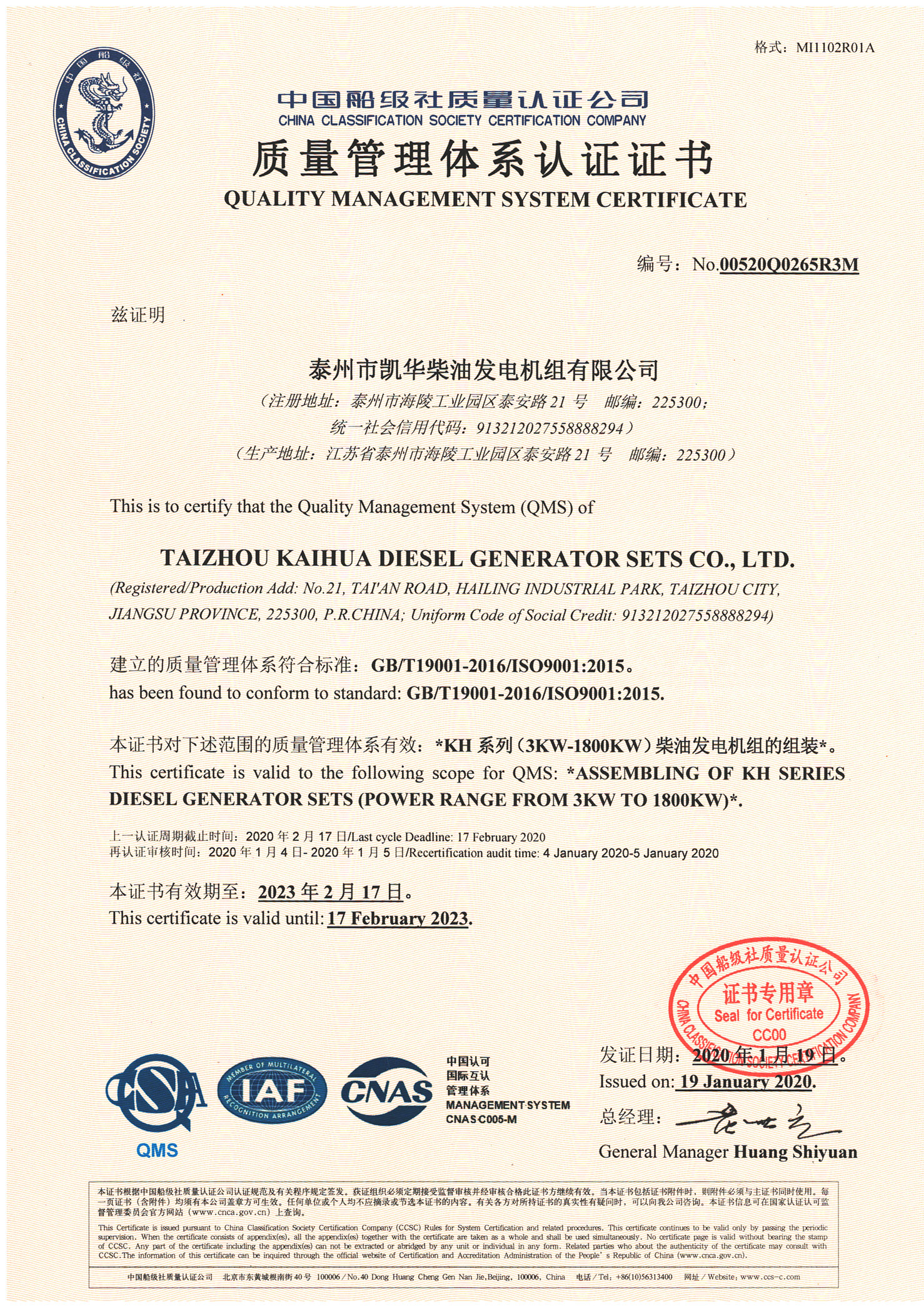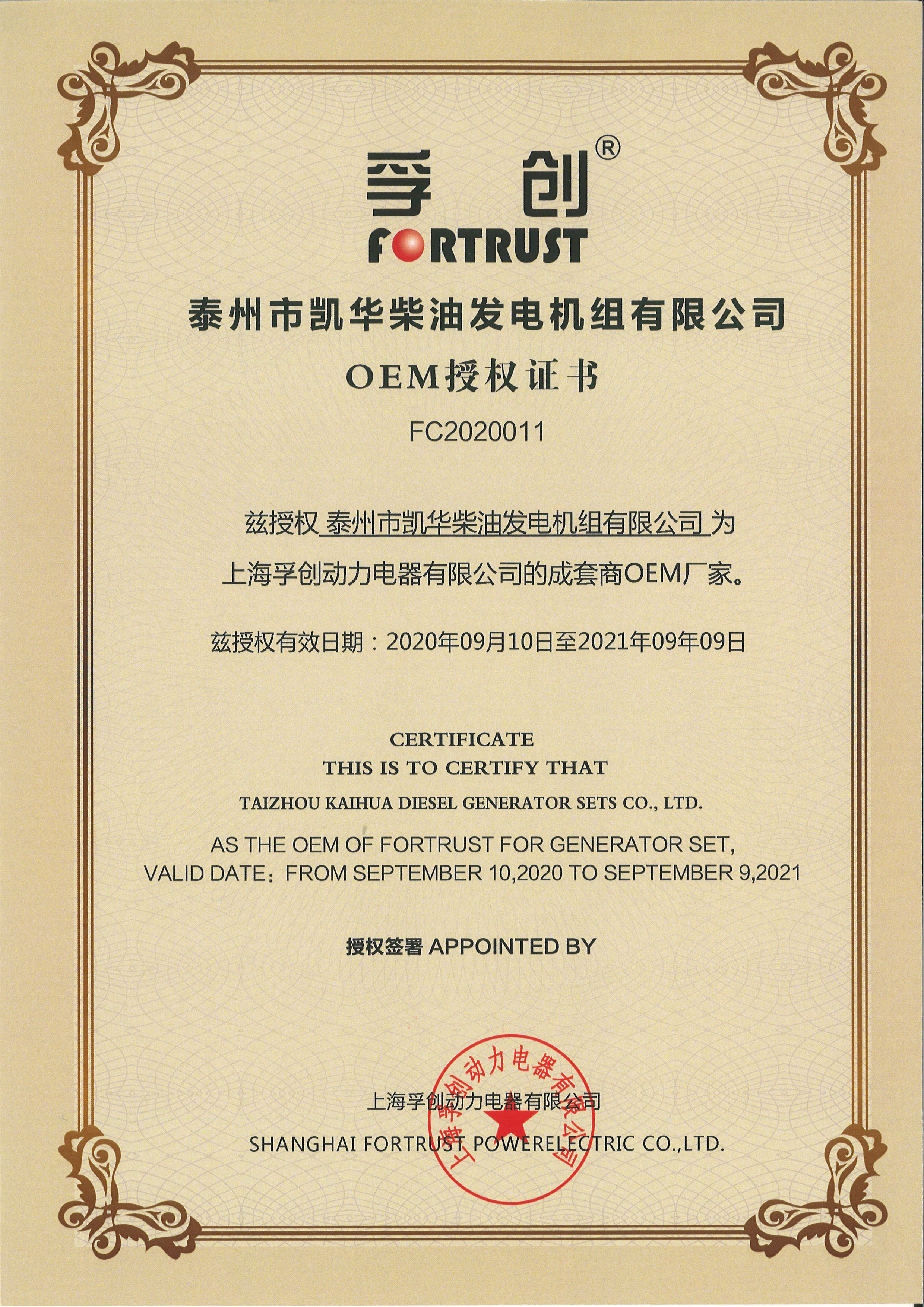 泰州市凱華柴油發電機組有限公司創建于2003年,是一家集柴油發電機組燃氣發電機組的研發、生產、銷售為一體的高新技術民營企業,公司座落于“漢唐古郡,淮海名區”,具有“鳳凰城”美稱的祥泰之州——江蘇省泰州市,地處中國經濟最發達的長三角經濟圈,水陸空立體交通,地理位置十分優越。公司目前注冊資本金11800萬元人民幣,生產基地占地六十畝,現有各類高素質員工一百多名,專業技術人員達46人,其中高級技術人員16人,年銷售額近6億元。